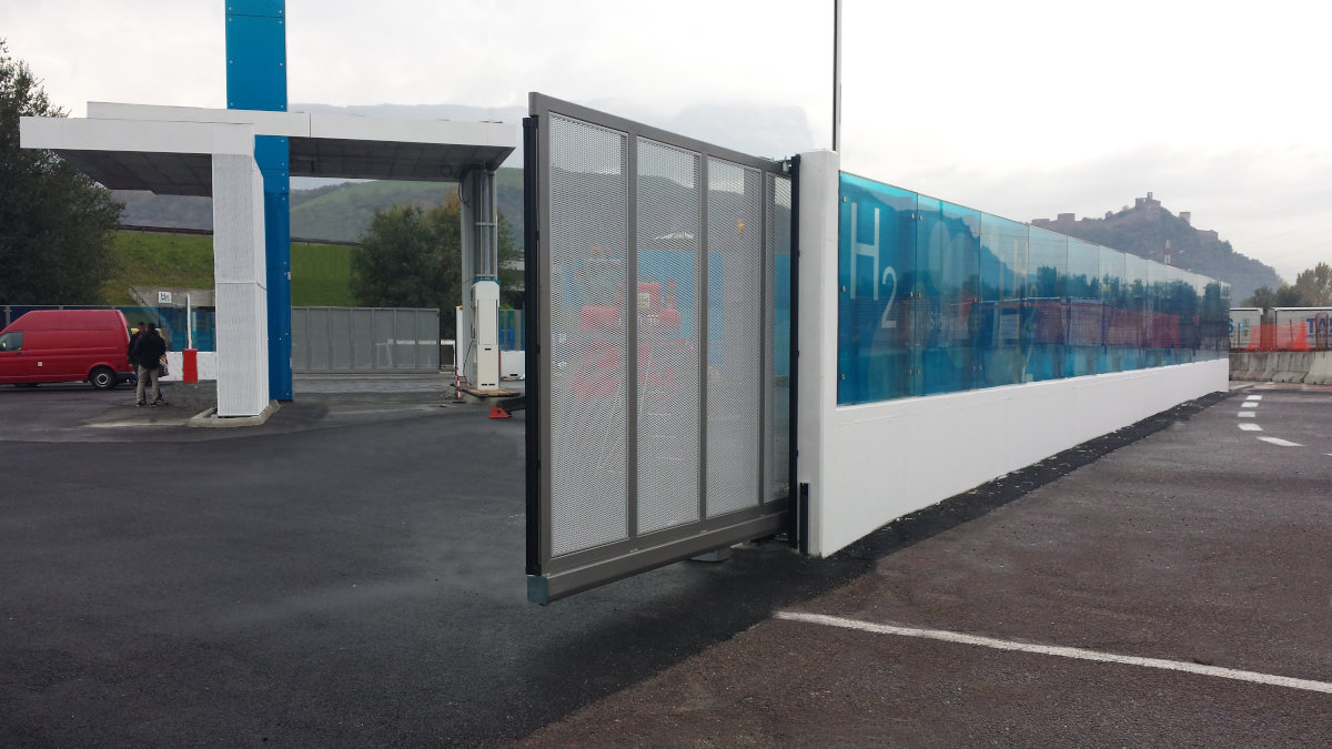 All'uscita Sud delle autostrade del Brennero ci sono questi cancelli a protezione della stazione di rifornimento per gli autobus pubblici della città di Bolzano, che dalla fine del 2013 è entrato a far parte delle poche città europee nelle quali circolano autobus a idrogeno.